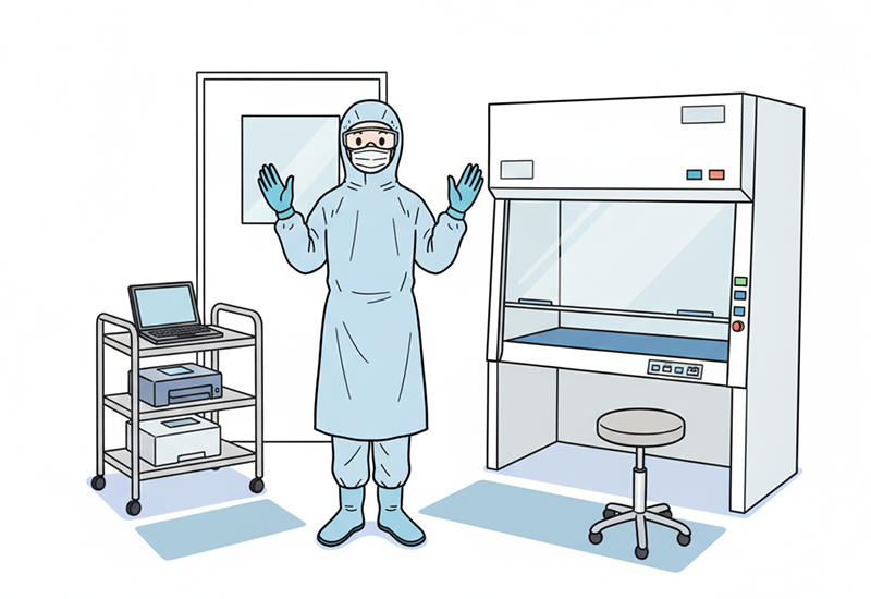 調製室や投与室、回収・廃棄エリアなど医療現場で、抗がん薬の取り扱い実態に沿ったばく露調査を実施。ふき取り等の環境測定と運用確認を組み合わせ、関連指針に沿った評価と記録、改善提案まで一体で支援します。院内の安全管理に活用できる報告書形式で提供します。