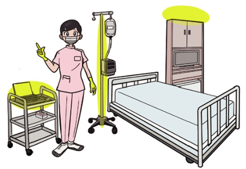 - 投薬を受けた患者さまの48時間以内の嘔吐物や血液、排せつ物を扱うとき