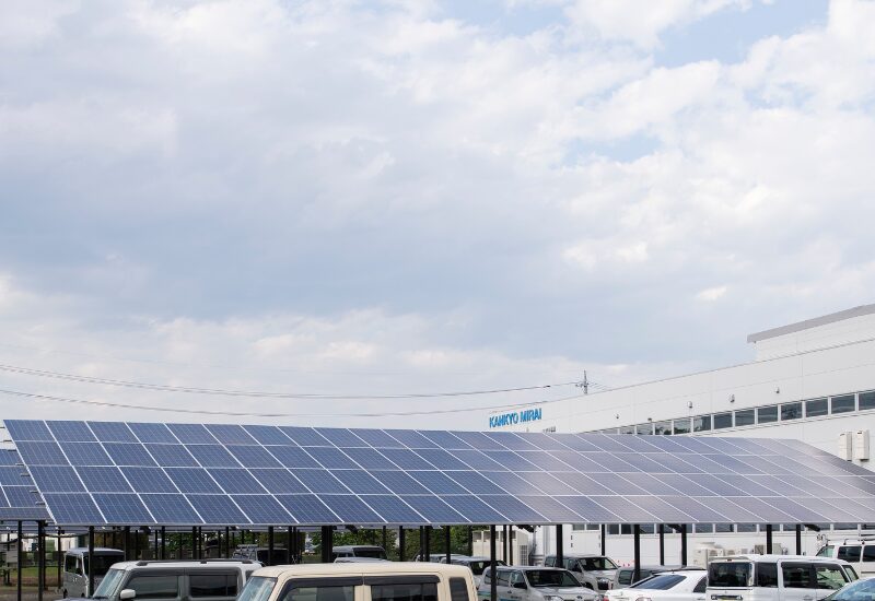 その一環として、当社では駐車場スペースを活用し、太陽光発電パネルを設置しています。限られた土地を有効活用しながら、再生可能エネルギーの創出を行うことで、地域とともにクリーンな未来を育んでいきます。